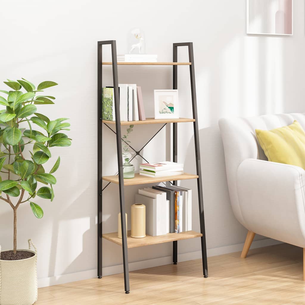 4-nadstropni stoječi regal svetlo rjav in črn 56x35x140 cm