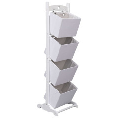 4-nadstropno stojalo s košarami belo 35x35x125 cm les