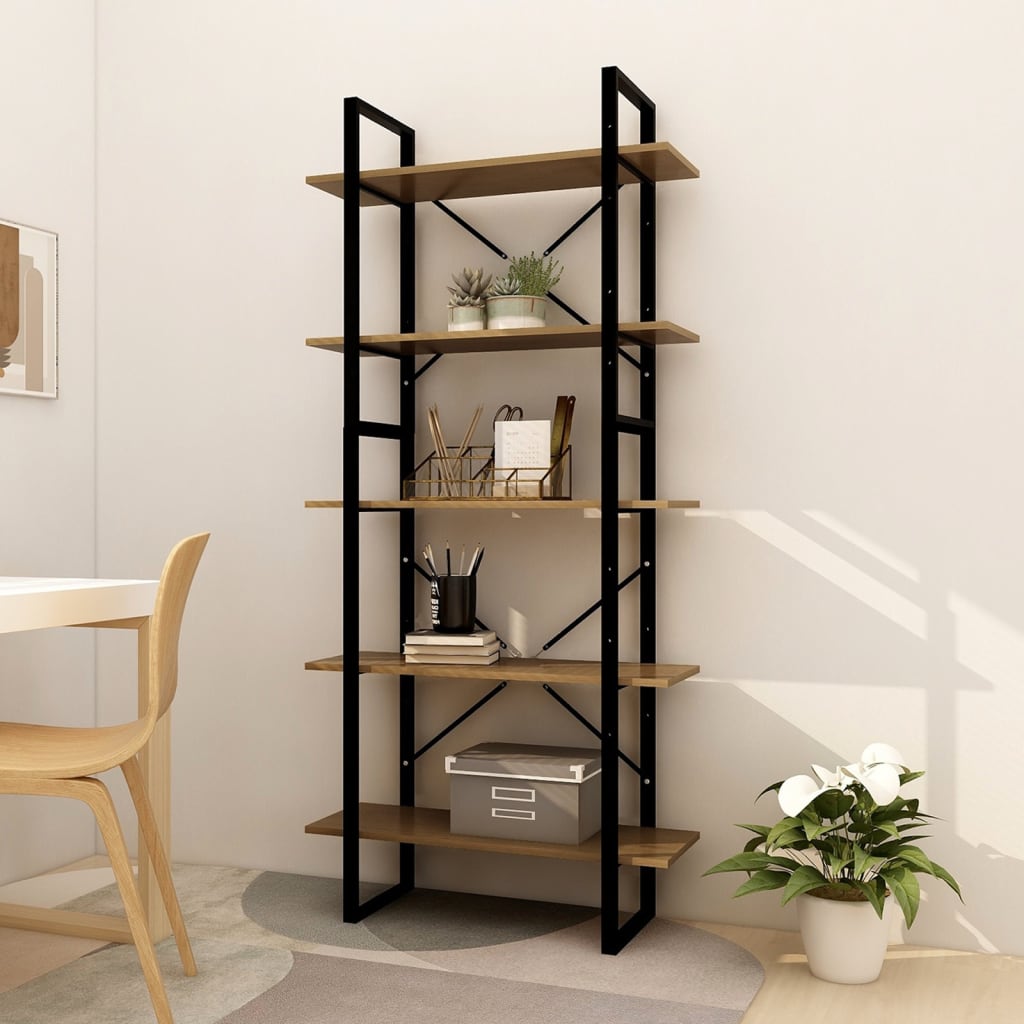 5-nadstropna knjižna omara rjava 80x30x175 cm borovina