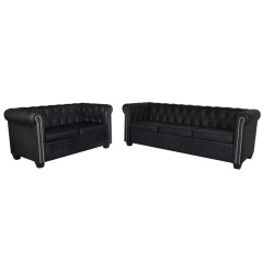 Chesterfield kavč dvosed in trosed um. usnje črne barve