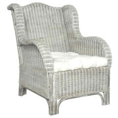 Enosed z blazino siv naravni ratan in platno