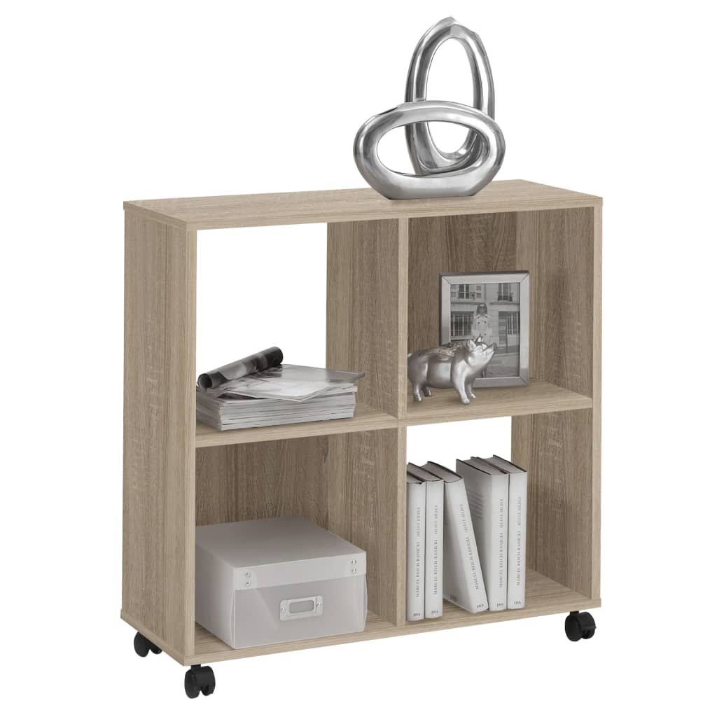 FMD Polica na vrtljivih kolesih s 4 predelki barva hrasta