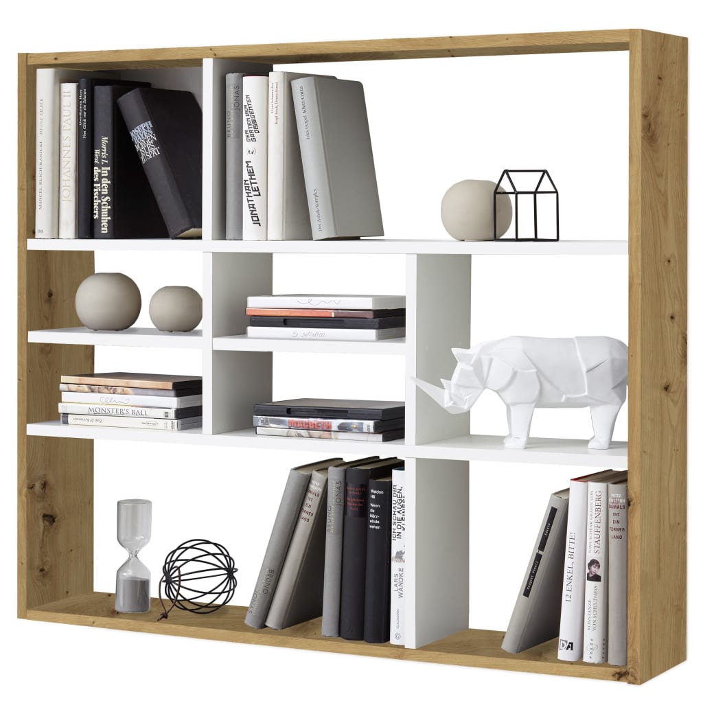 FMD Stenska polica z 9 predelki antična barva hrasta in bela