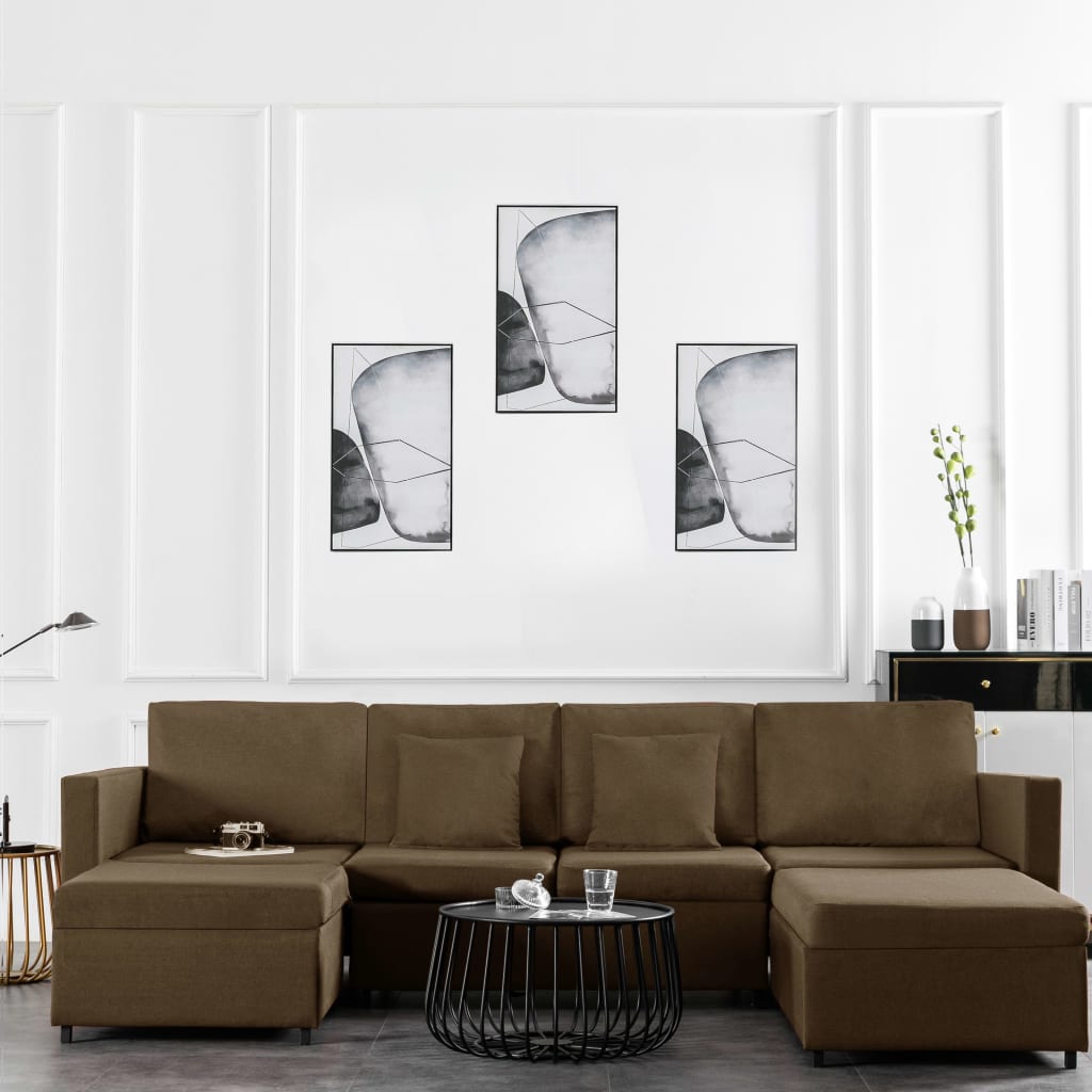 Izvlečni kavč z ležiščem štirised iz blaga rjav