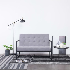 Kavč dvosed z naslonjali za roke svetlo siv jeklo in blago