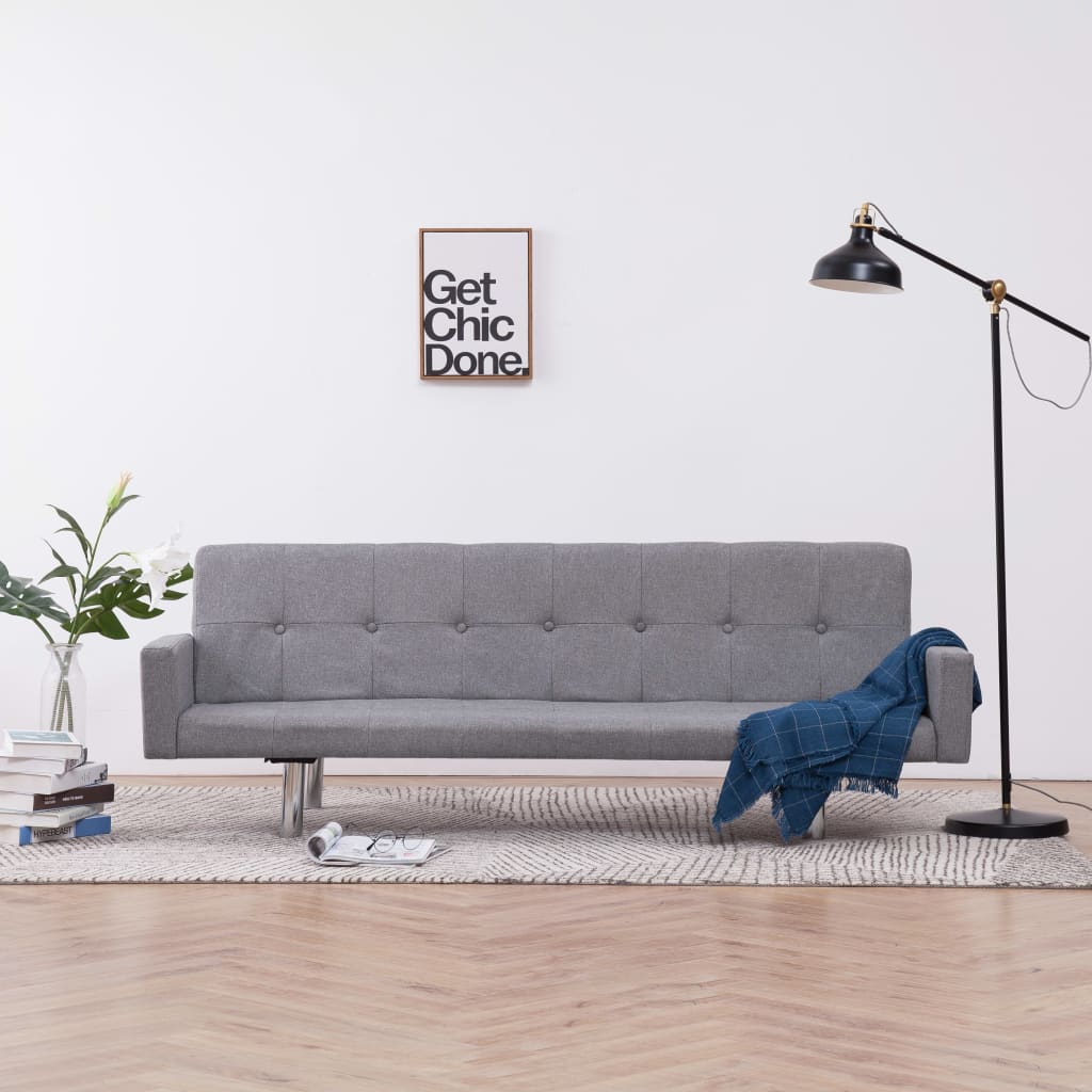 Kavč z ležiščem in naslonjalom svetlo siv poliester