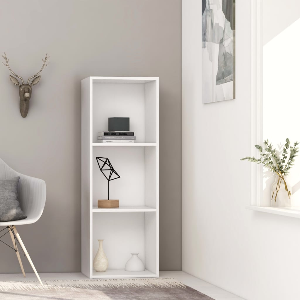Knjižna omara 3-nadstropna bela 40x30x114 cm iverna plošča