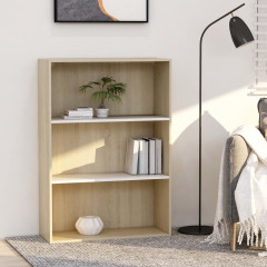 Knjižna omara 3-nadstropna bela in sonoma hrast 80x30x114 cm