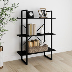 Knjižna omara 3-nadstropna črna 80x30x105 cm trdna borovina