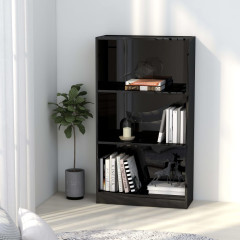 Knjižna omara 3-nadstropna visok sijaj črna 60x24x109 cm