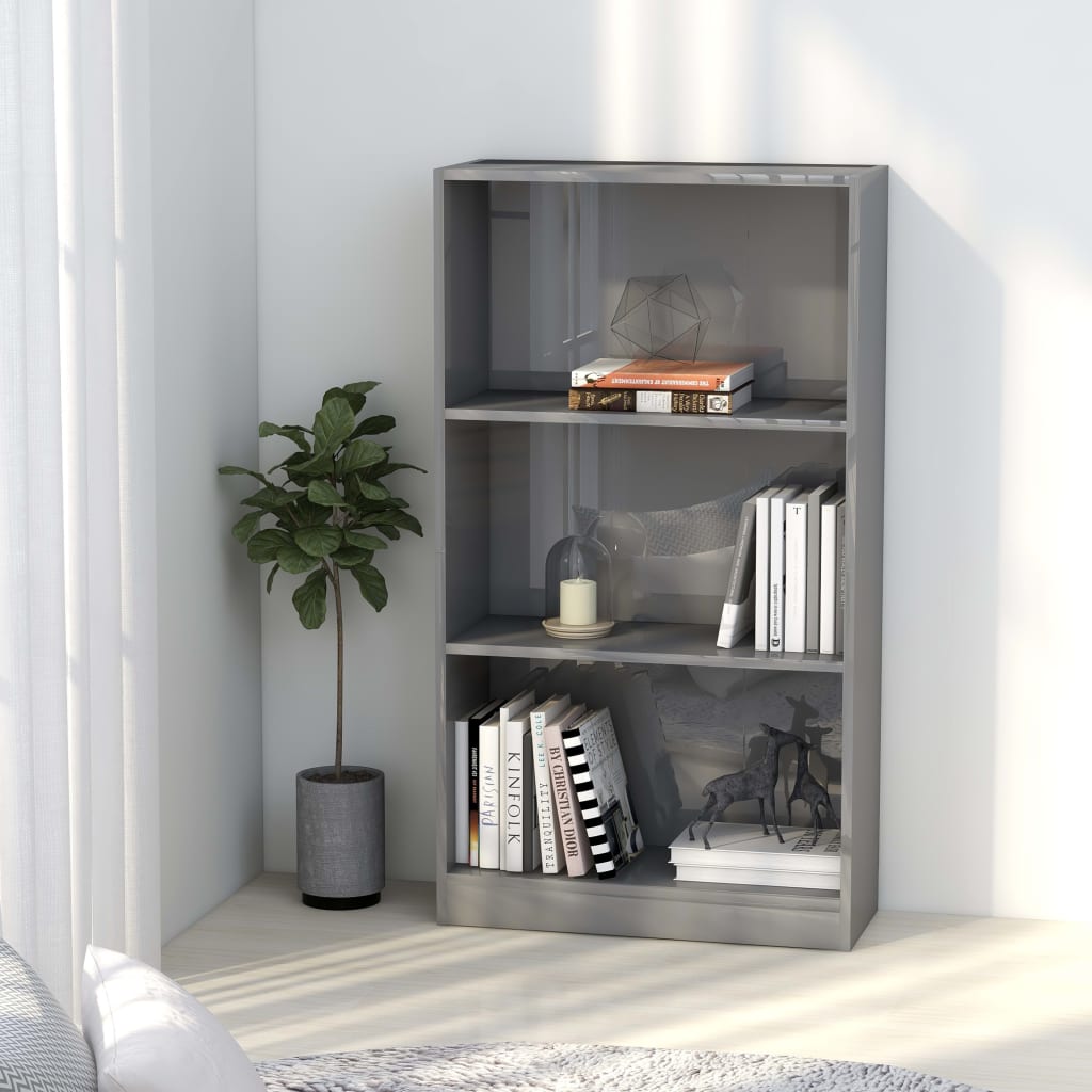 Knjižna omara 3-nadstropna visok sijaj siva 60x24x109 cm