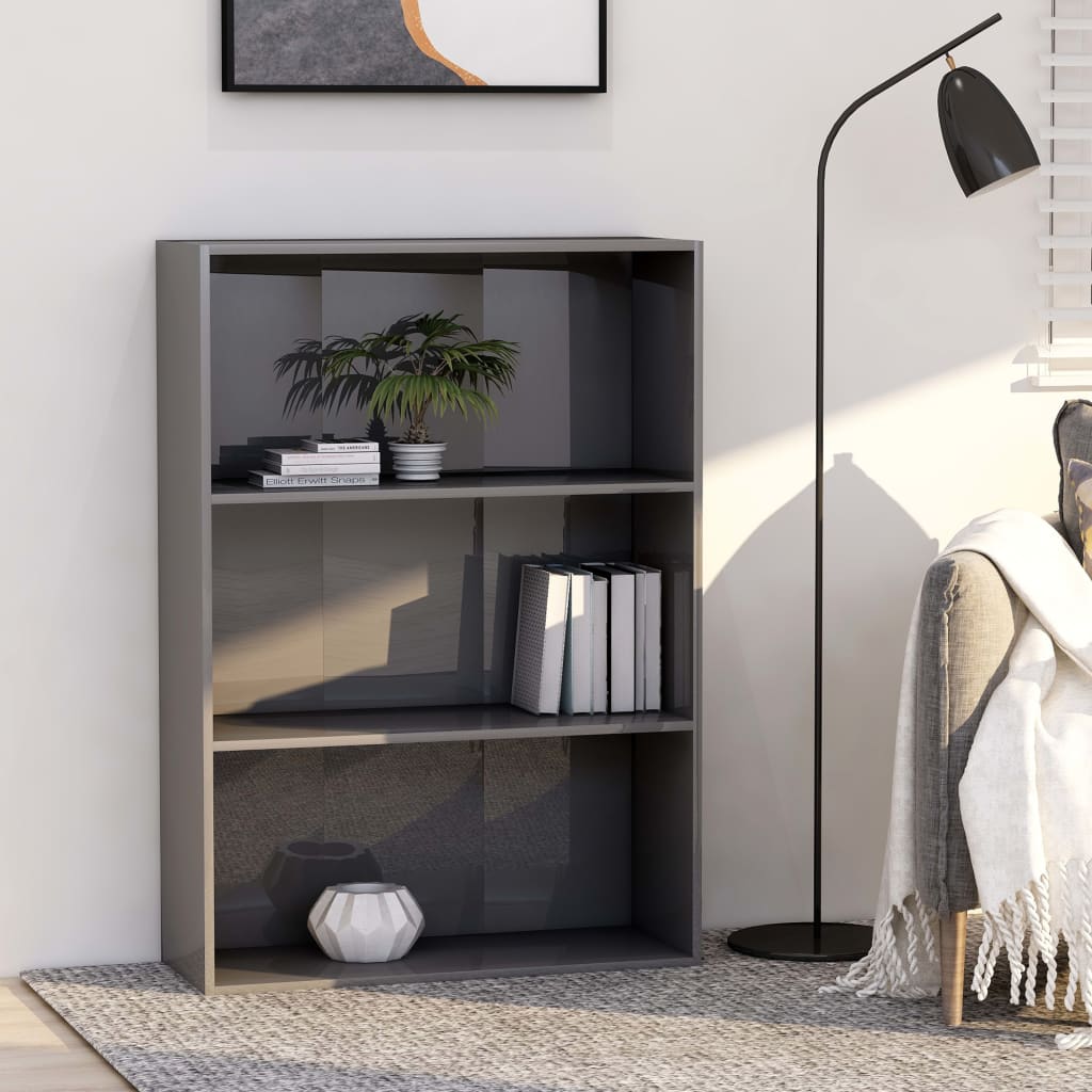 Knjižna omara 3-nadstropna visok sijaj siva 80x30x114 cm