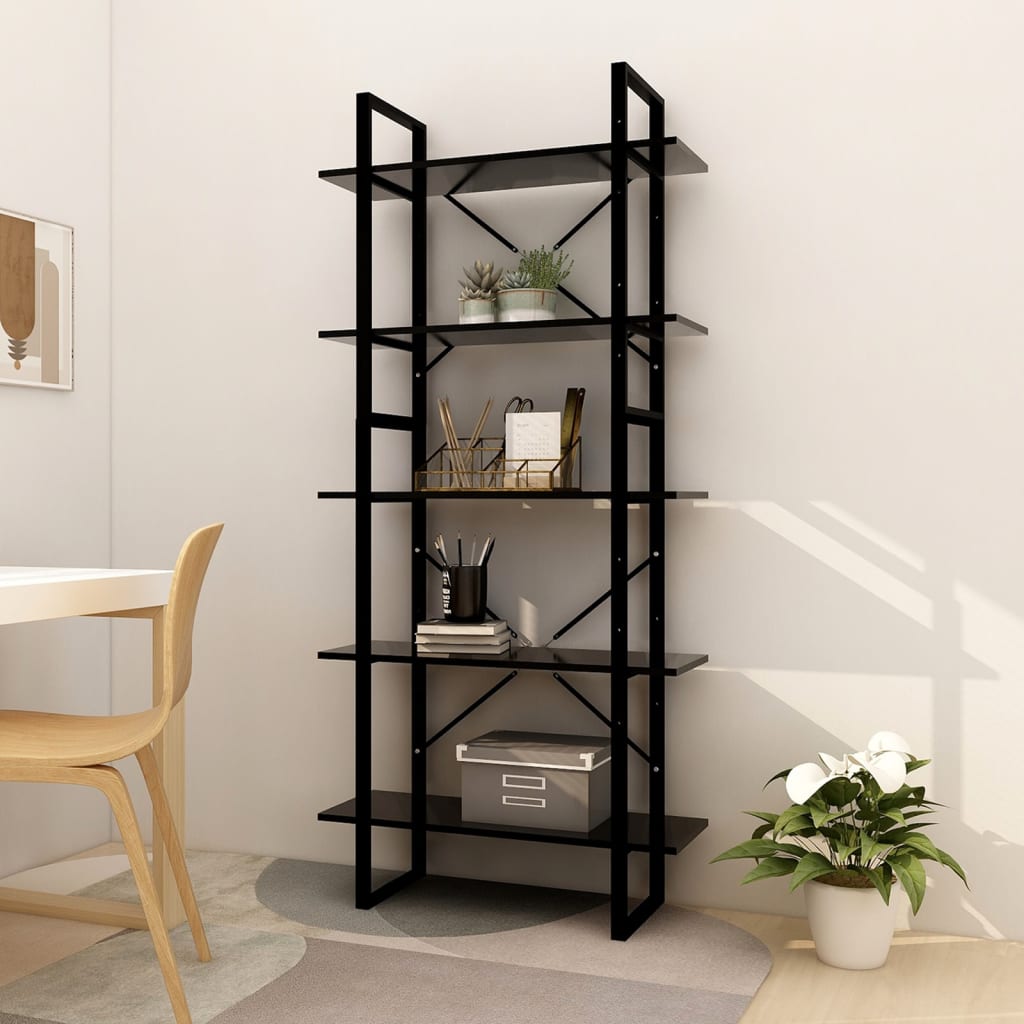 Knjižna omara 5-nadstropna črna 80x30x175 cm inženirski les