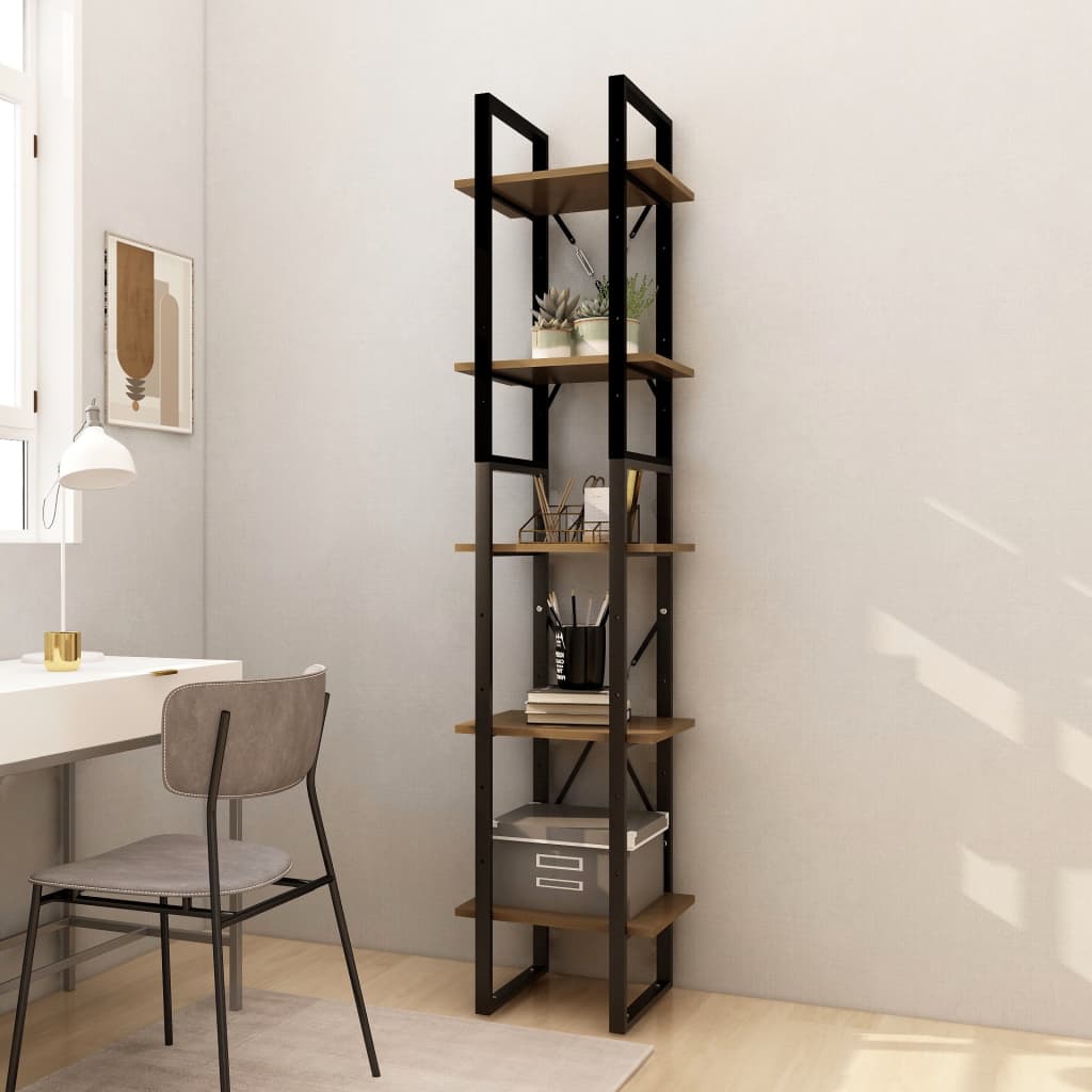 Knjižna omara 5-nadstropna rjava 40x30x175 cm borovina