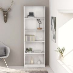 Knjižna omara 5-nadstropna visok sijaj bela 60x24x175 cm