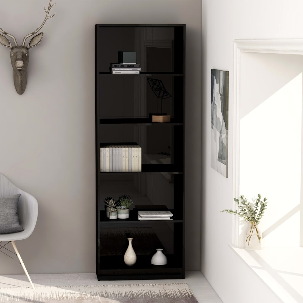 Knjižna omara 5-nadstropna visok sijaj črna 60x24x175 cm