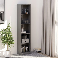 Knjižna omara 5-nadstropna visok sijaj siva 40x24x175 cm