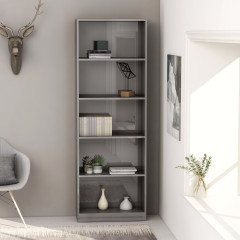 Knjižna omara 5-nadstropna visok sijaj siva 60x24x175 cm