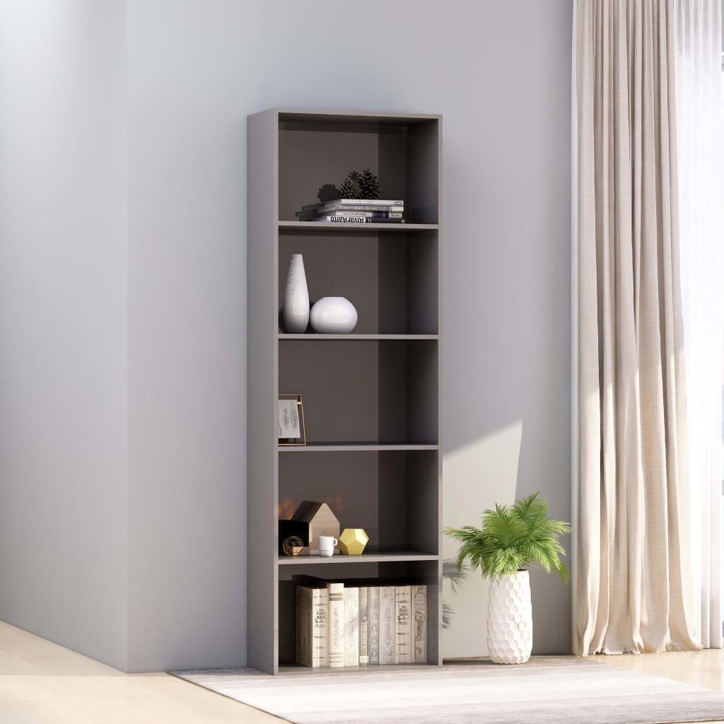 Knjižna omara 5-nadstropna visok sijaj siva 60x30x189 cm