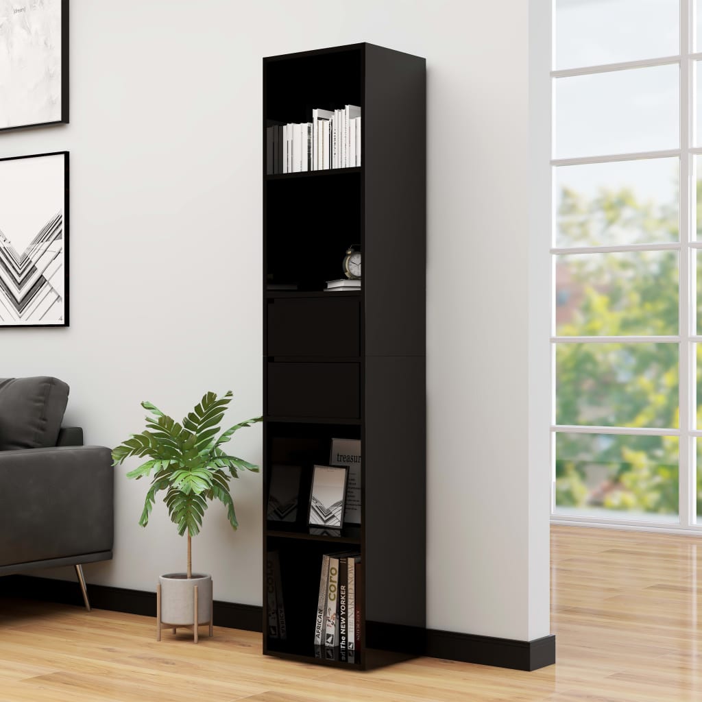 Knjižna omara visok sijaj črna 36x30x171 cm iverna plošča