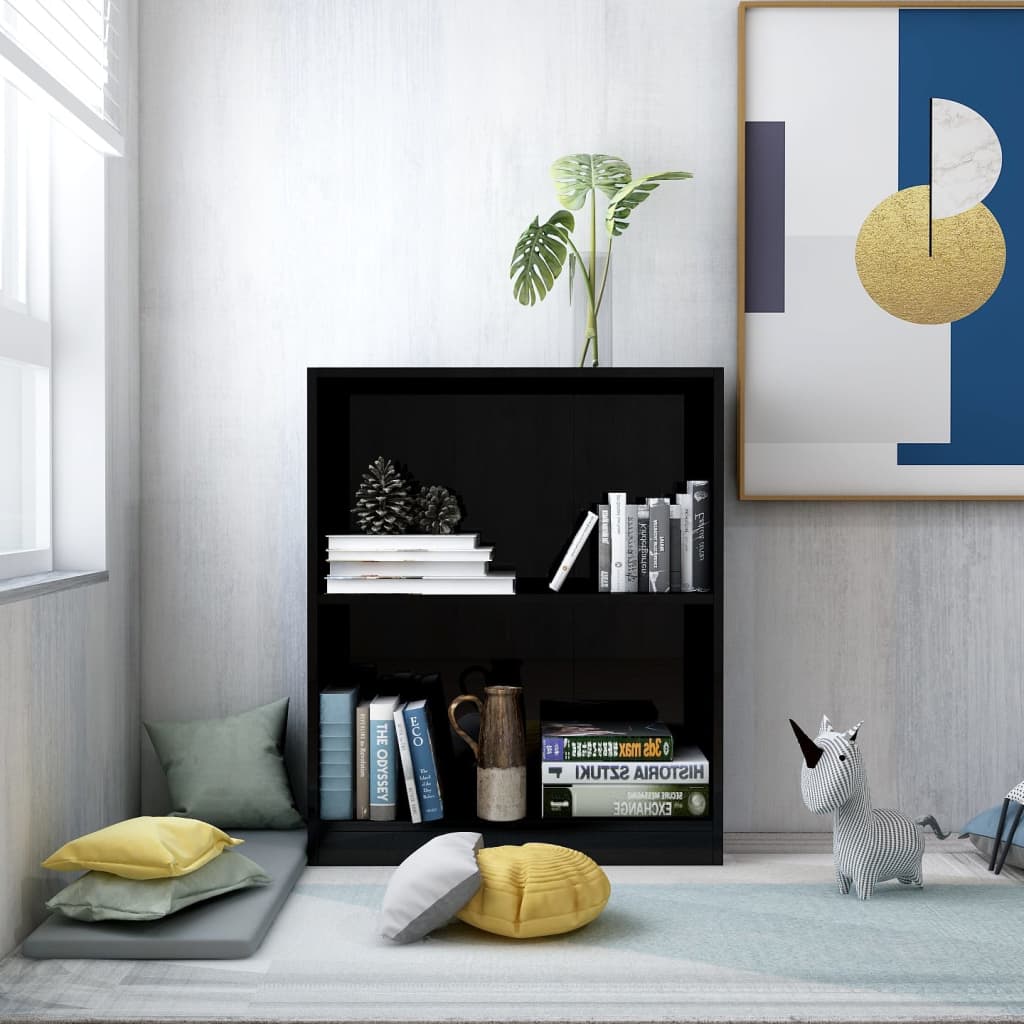 Knjižna omara visok sijaj črna 60x24x76 cm konstruiran les