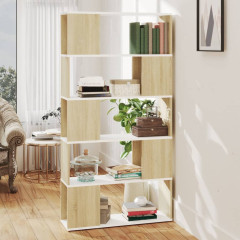 Knjižna omara za razdelitev prostora bela in hrast 80x24x155 cm