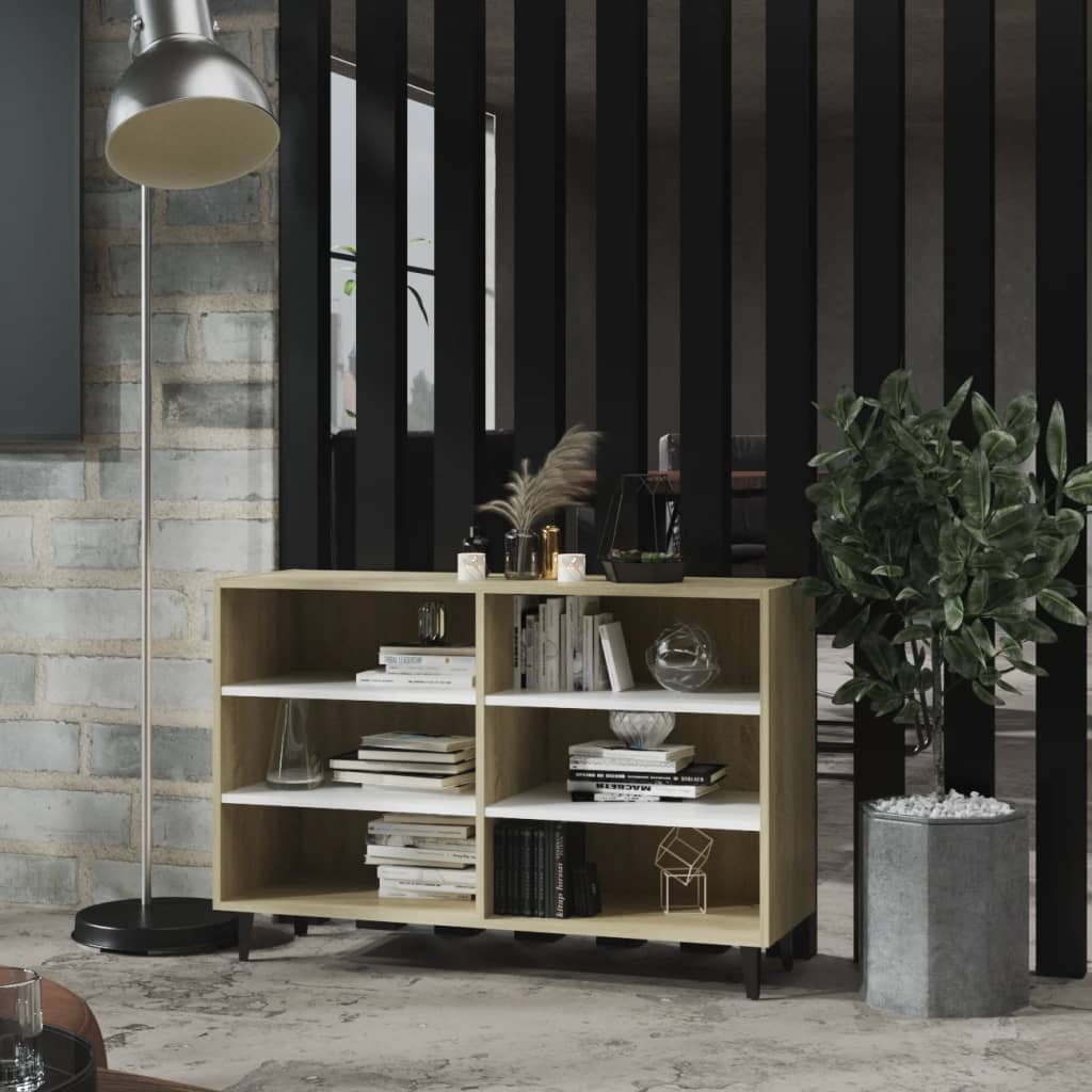 Komoda bela in sonoma hrast 103,5x35x70 cm iverna plošča