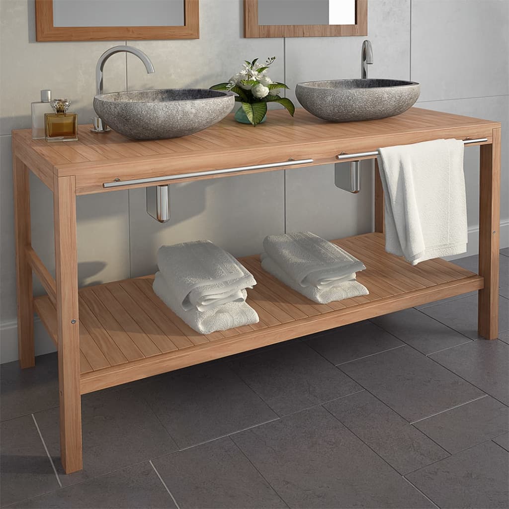 Kopalniška toaletna omarica trdna tikovina z umivalnikoma