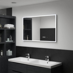 Kopalniško LED ogledalo s senzorjem na dotik in uro 100x60 cm
