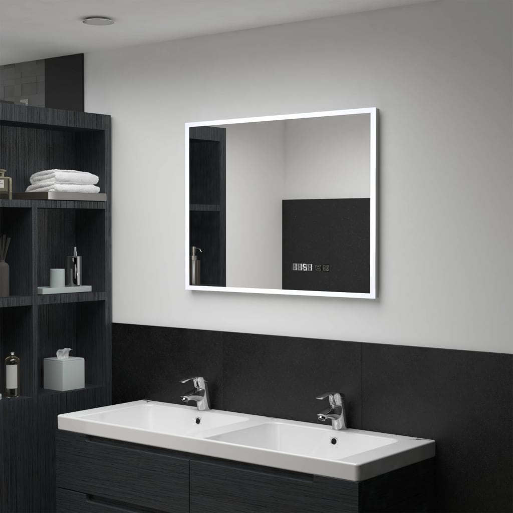 Kopalniško LED ogledalo s senzorjem na dotik in uro 80x60 cm