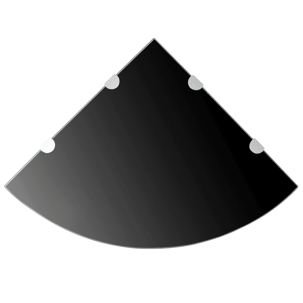 Kotna Polica s Kromirano Podporo Steklo Črna 45x45 cm