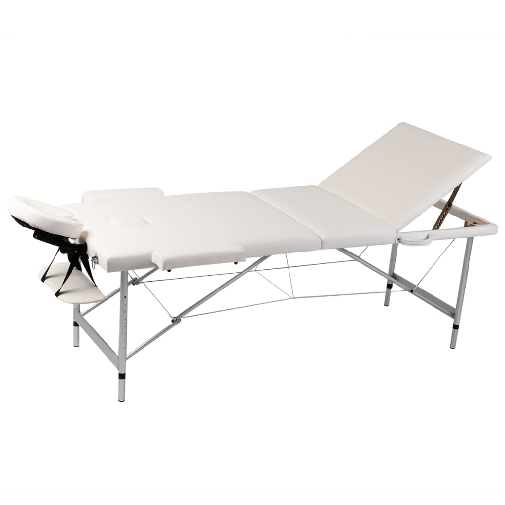 Krem bela zložljiva masažna miza z 3 območji in aluminjastim okvirjem