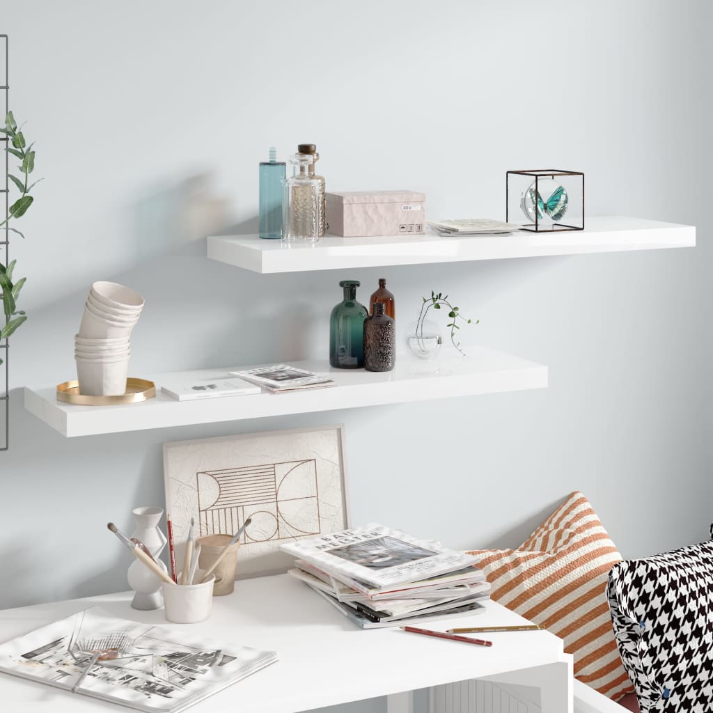 Lebdeče police 2 kosa visok sijaj bele 90x23,5x3,8 cm MDF