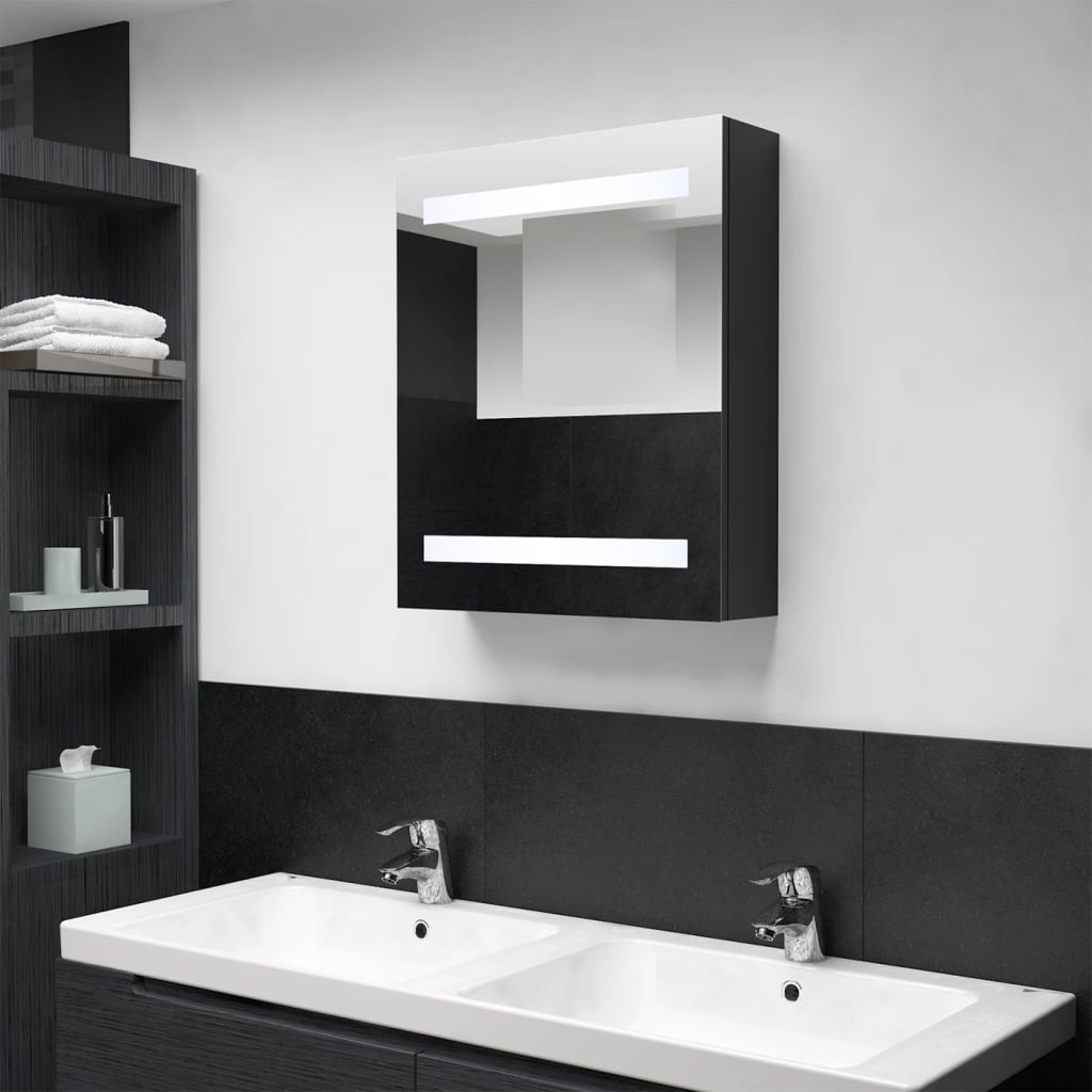 LED kopalniška omarica z ogledalom črna 50x14x60 cm