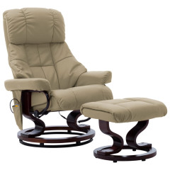 Masažni naslanjač kapučino umetno usnje in ukrivljen les