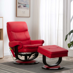 Masažni naslanjač rdeče umetno usnje in ukrivljen les