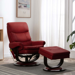 Masažni naslanjač vinsko rdeče umetno usnje in ukrivljen les