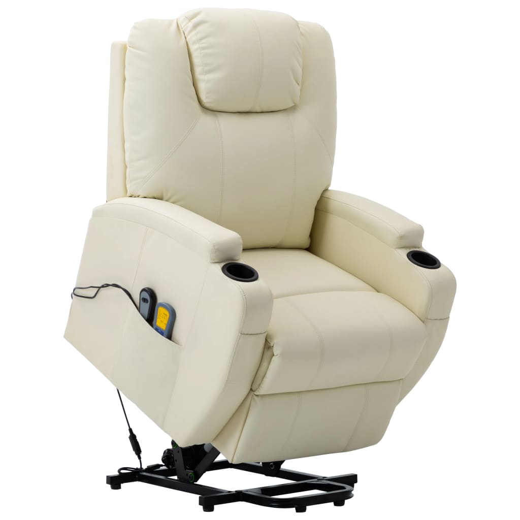 Masažni stol s funkcijo vstajanja belo umetno usnje