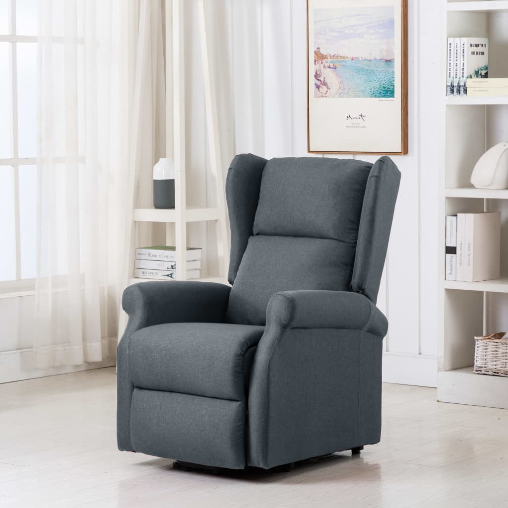 Masažni stol s funkcijo vstajanja svetlo sivo blago