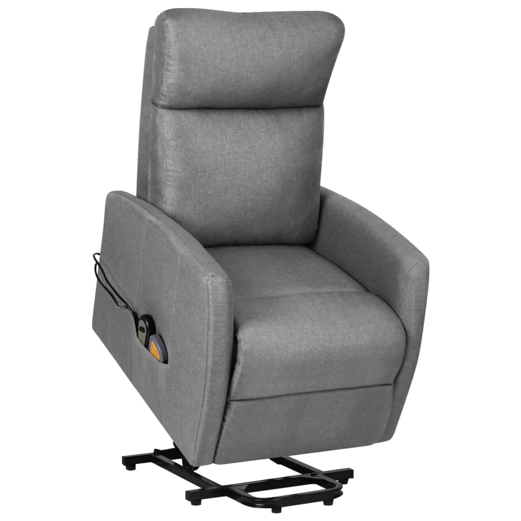 Masažni stol s funkcijo vstajanja svetlo sivo blago