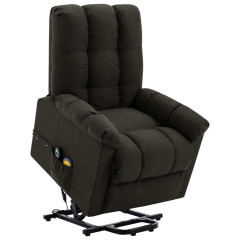 Masažni stol s funkcijo vstajanja temno rjavo blago