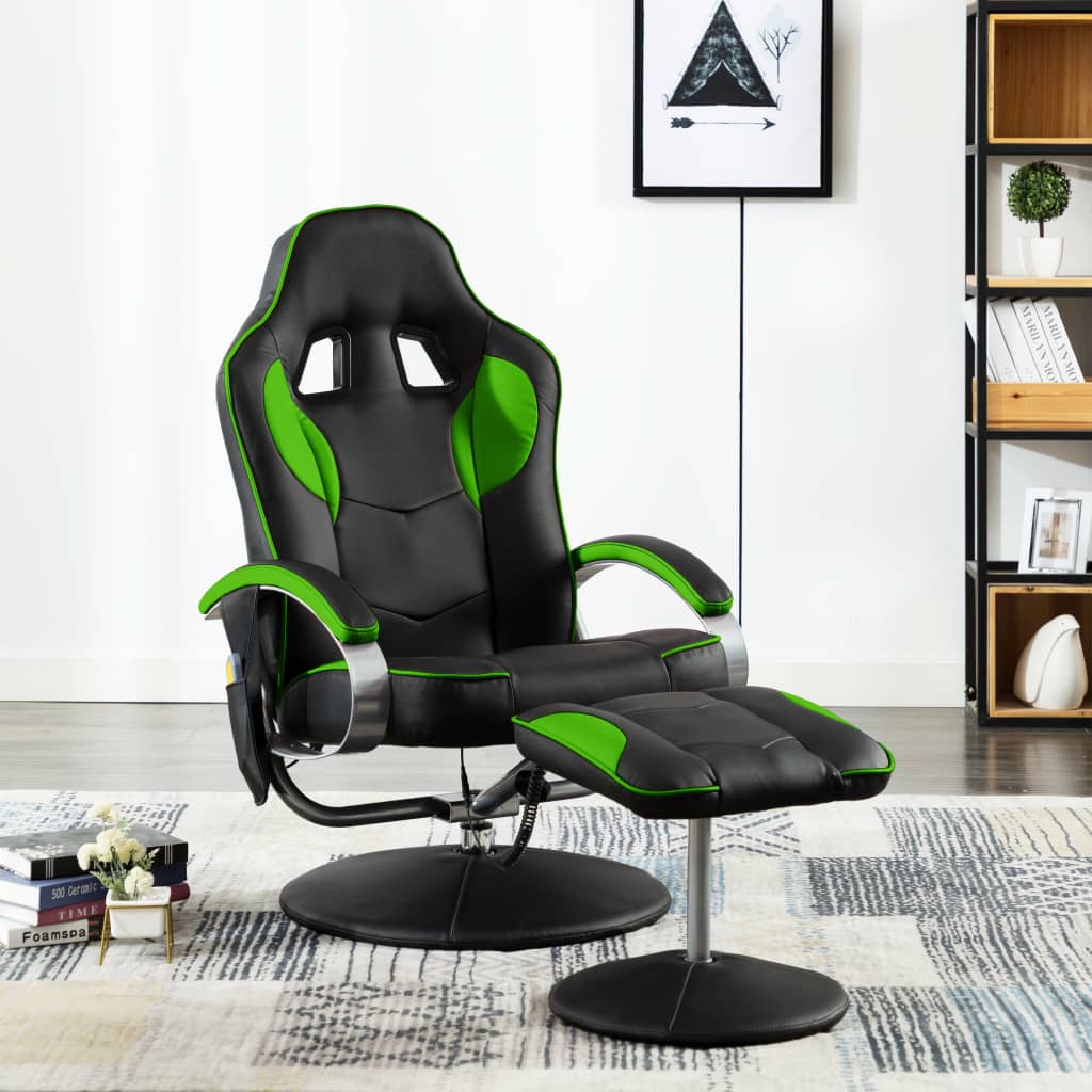 Masažni stol s stolčkom za noge zeleno umetno usnje