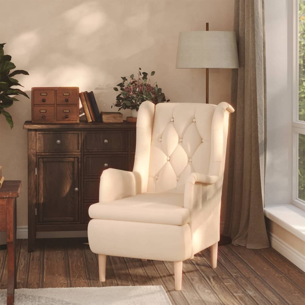 Naslanjač z nogami iz kavčukovca krem iz blaga