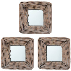 Ogledala 3 kosi 15x15 cm s pletenim okvirjem