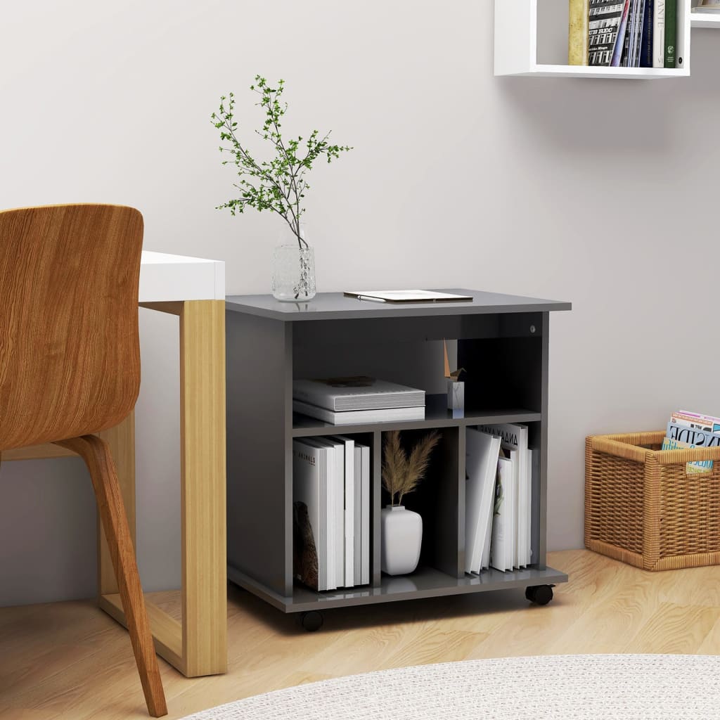 Omarica na kolesih visok sijaj siva 60x45x60 cm iverna plošča