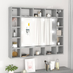 Omarica z ogledalom in LED lučkami siva sonoma 91x15x76,5 cm
