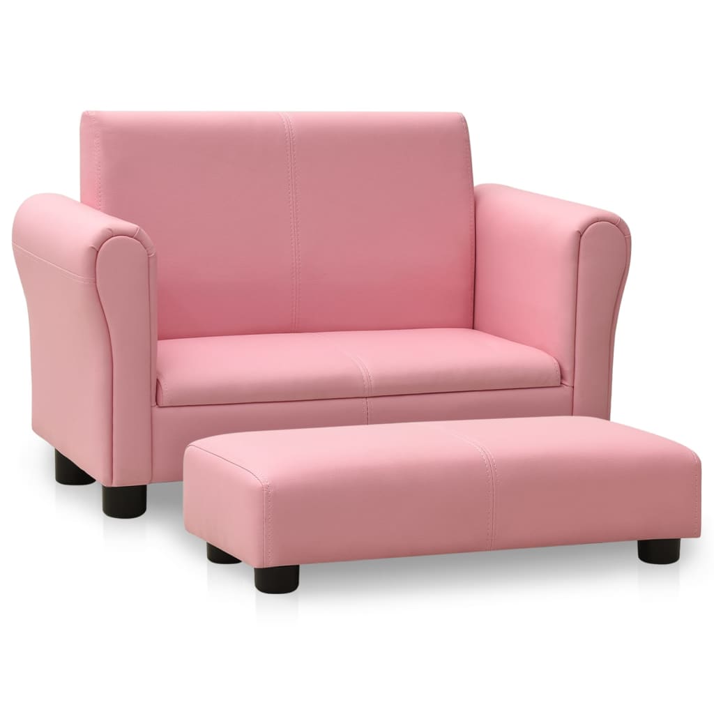 Otroški kavč s stolčkom roza umetno usnje
