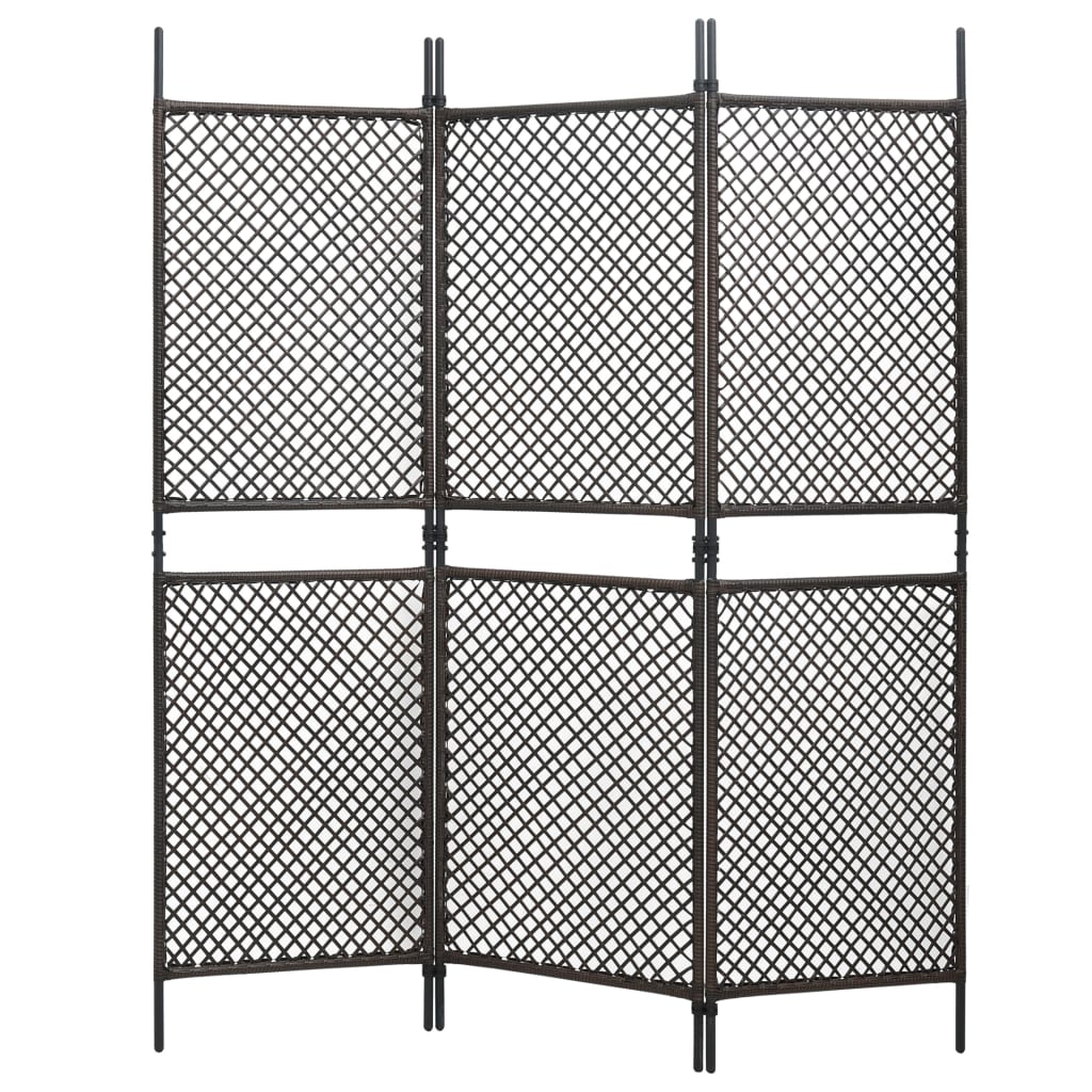 Paravan 3-delni iz poli ratana rjav 180x200 cm