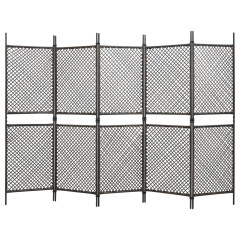 Paravan 5-delni iz poli ratana rjav 300x200 cm