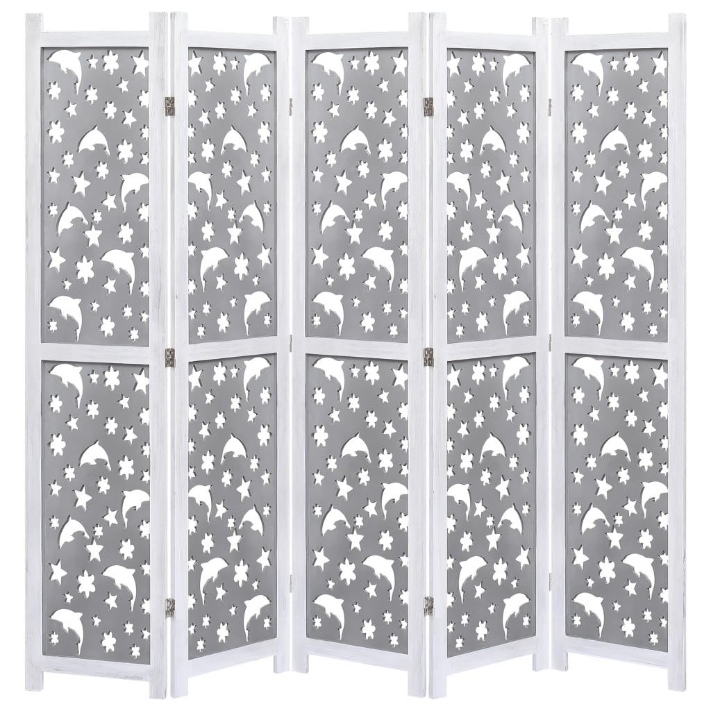 Paravan 5-delni siv 175x165 cm trden les